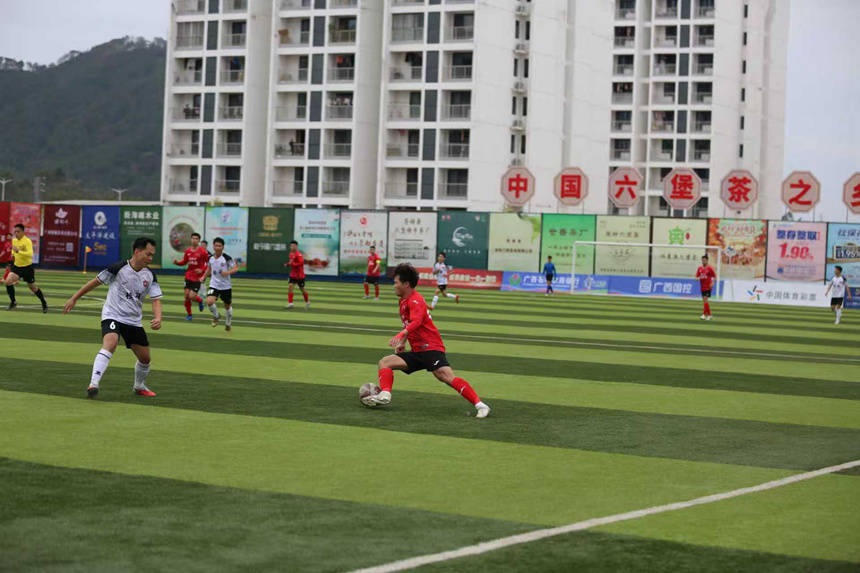梧州市苍梧县六堡茶队是一支攻防兼备的队伍,驰骋绿茵,展现出扎实的技术水平与强烈的团队协作意识。进攻环节,队员们配合默契,带球突破果断从容,甩开阻拦默契短传交织成网,无论是远射还是近距离攻门,每一次向前都展现出良好的技术素养,持续向对手防线施加压力,每一次进球都离不开全队的协同发力;防守方面,全队防守体系严密,后卫线卡位精准、拦截果断,中场积极协防,门将反应迅速、扑救稳健,队员补位及时,以坚定的防守意志筑牢防线,有效化解对手多次进攻威胁。