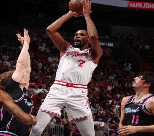 因为小贾伤停,这场比赛火箭队引以为傲的篮板球都没有任何优势,两队的篮板球都是47个,火箭最强的前场篮板也只比热火多1个,申京因为一直遭遇犯规困扰也未能帮KD减压。