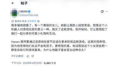然而,Hasan Piker在直播中却对这一现象发表了激烈看法。他将部分玩家群体形容为“失败者”,并质疑这些人为何会关注“组建家庭”或“养育孩子”等议题。相关言论迅速在社区中引发争议。