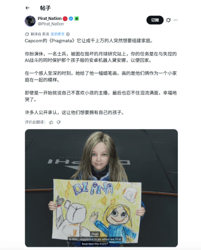 在游戏剧情中,角色戴安娜赠予主角休一幅象征“家庭”的蜡笔画,这一情节触动了不少玩家情感。一些原本表示不喜欢孩子的主播,在体验后也坦言被剧情打动,甚至开始思考关于家庭与亲情的话题。
